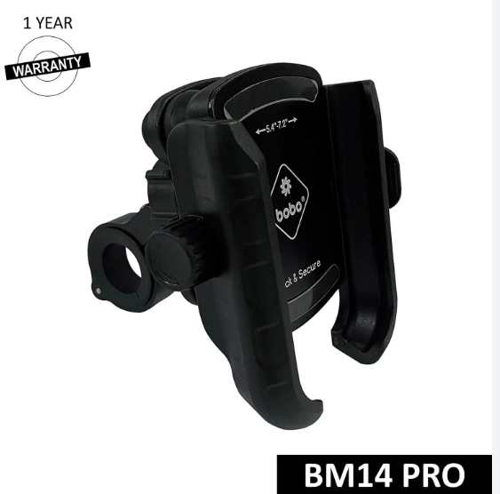 The Bobo BM14 Pro X Universal Mobile Holder is engineered for riders who demand unmatched strength, reliability, and ease of use from their mobile mount. Built with a robust metal body and precision grip design, the BM14 Pro X provides a firm, vibration-free hold that keeps your smartphone secure even on rough terrains, high-speed stretches, or off-road trails. Its advanced auto-lock mechanism automatically tightens around the phone when placed in the holder, offering a quick, hassle-free mounting experience while ensuring maximum grip and safety.