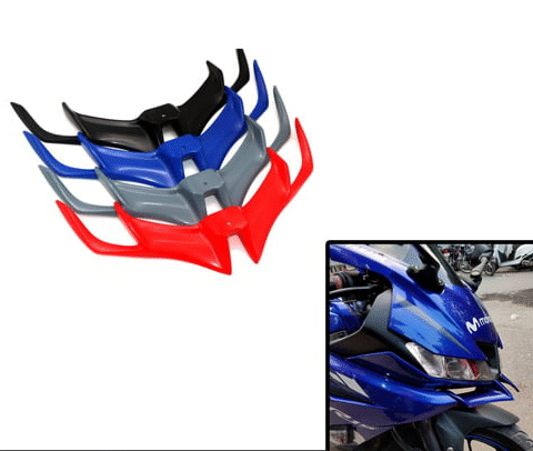 TRANSGFORM YOUR STOCK R15 V3 WITH THE ALL NEW FRONT WINGLET WHICH NOT ONLY ENHANCES THE BEAUTY OF THE VEHICLE BUT ALSO HELPS ATTAINING MORE AERODYNAMICITY OF THE BIKE.THE HIGH QUALITY FIBER REINFORCED PLASTIC MATERIAL REALLY MAKES IT SUPER DURABLE.MAKE YOUR REGULAR R15 A HEADTURNER WHEREEVER YOU GO !!